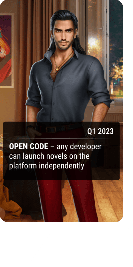 Our key task is to expand the genre boundaries of interactive novels, for this we plan a number of experimental stories and focus on the production of "blockbuster novels" that are above the market level of quality. They act as a native advertising of the platform – just like Netflix and Amazon's internal film production works